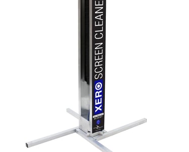 A zero screen cleaner system features four nylon brushes and multiple jets that will leave your screens clean. This system is safe to use on all types of screens, and will not damage coatings or leave any resedues. Due to the balance of water and brushing, screens will dry much faster then other cleaning methods.
